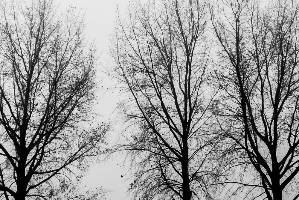 Arbres photographiés en noir et blanc.