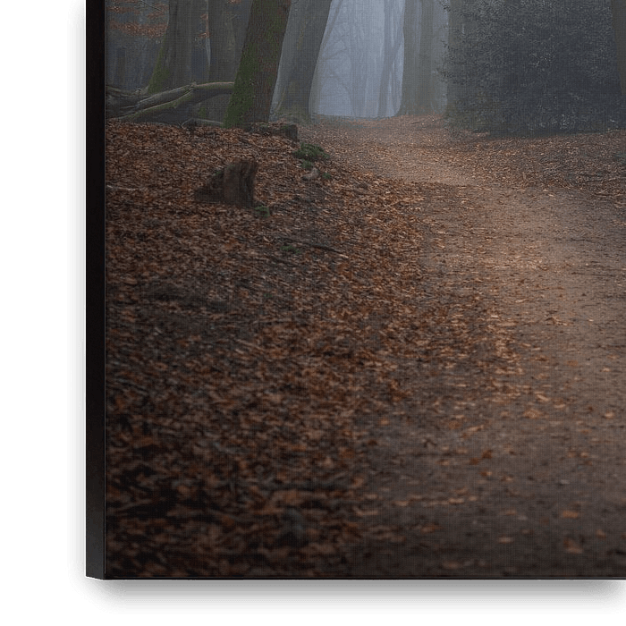 Achetez cette œuvre d'art de paysage Arbres sombres dans le Speulderbos à Ermelo, aux Pays-Bas, avec de la brume en arrière-plan et des f par Bart Ros sur toile, aluminium, ArtFrame ou photographie (encadrée), impression d'art en haute qualité et tout format.