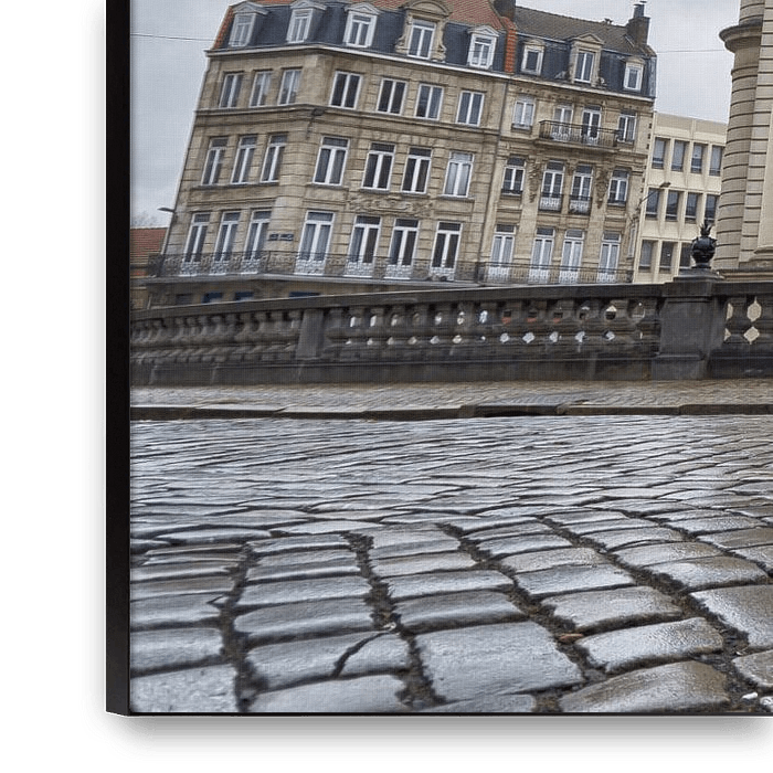 Photo de synthèse de la place Simon Vollant dans la ville lilloise du XIe siècle, où se trouve la porte de Paris. L'arc de triomphe de 32 mètres de haut a été construit en 1687, en l'honneur du «roi soleil» Louis XIV.