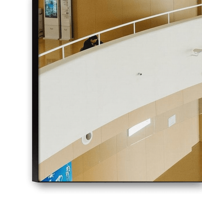 Cette photo montre l'intérieur spacieux et ouvert d'un centre culturel moderne à Chengdu, dans le Sichuan, en Chine. Les lignes fluides de l'escalier en colimaçon et les formes minimalistes et organiques confèrent à l'espace un calme presque muséal. La surface brillante du sol reflète la lumière douce qui pénètre par les hautes fenêtres, créant une atmosphère calme et élégante.