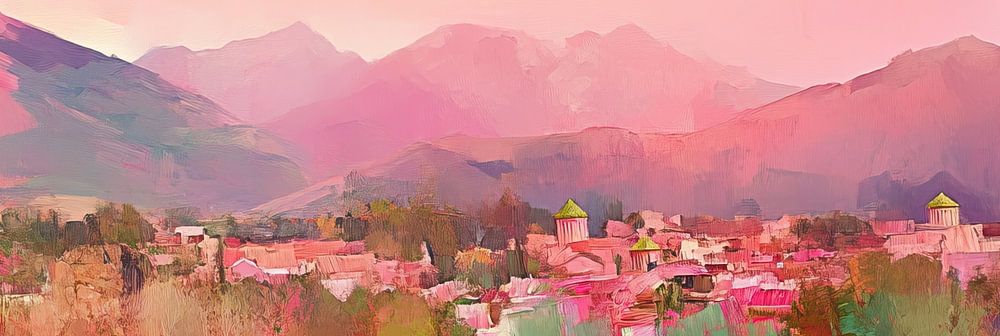 Détails : Arménie, paysage, art, peinture abstraite, montagnes, village, coloré, nature, culture, art arménien