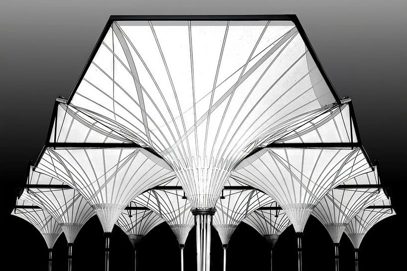 Arrêt de bus à Leidsche Rijn, Utrecht, en noir et blanc, style « fine art »