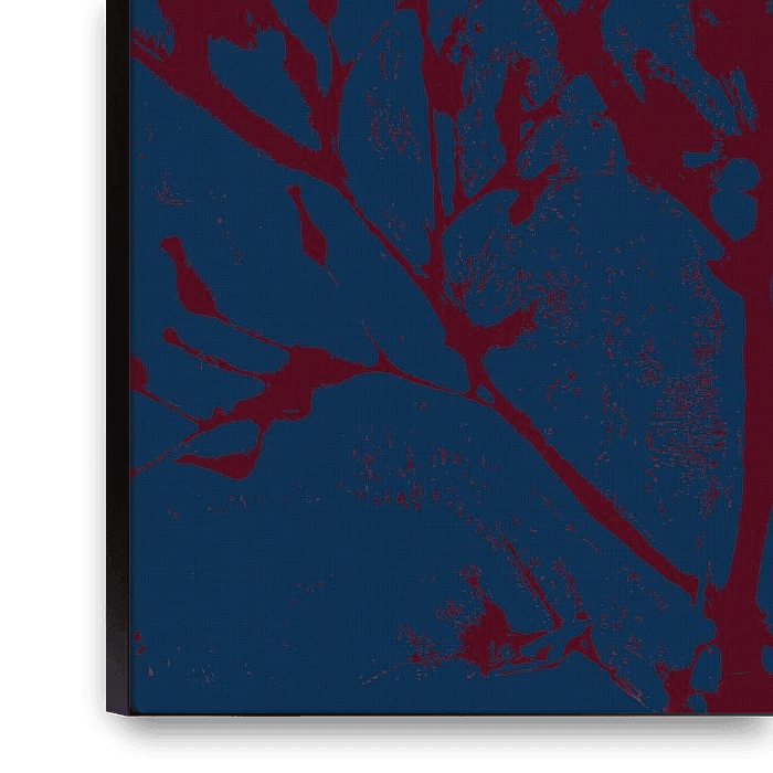 À propos de ‘Art botanique abstrait. Formes organiques en bleu cobalt foncé et brun chaud.’ par Dina Dankers