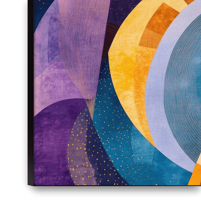 Un jeu harmonieux de couleurs douces et de formes géométriques se déploie, comme s'il était inspiré par un cosmos mystérieux. Les éléments ronds et chatoyants invitent à la rêverie et confèrent à chaque pièce une aura particulière. Parfaitement adaptée au salon, cette œuvre d'art crée une atmosphère accueillante et relaxante.
