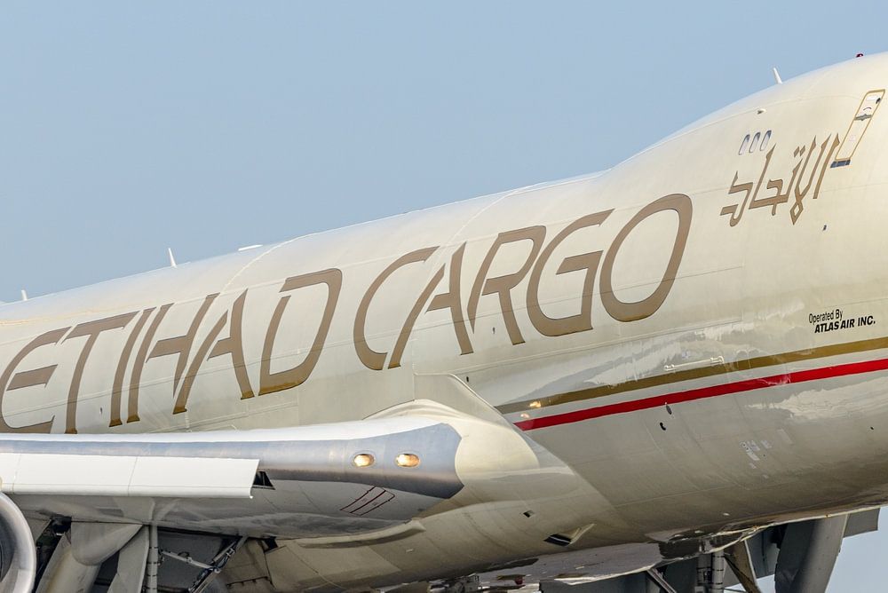 L'avion est peint aux couleurs d'Etihad Cargo et loué à Atlas Air.