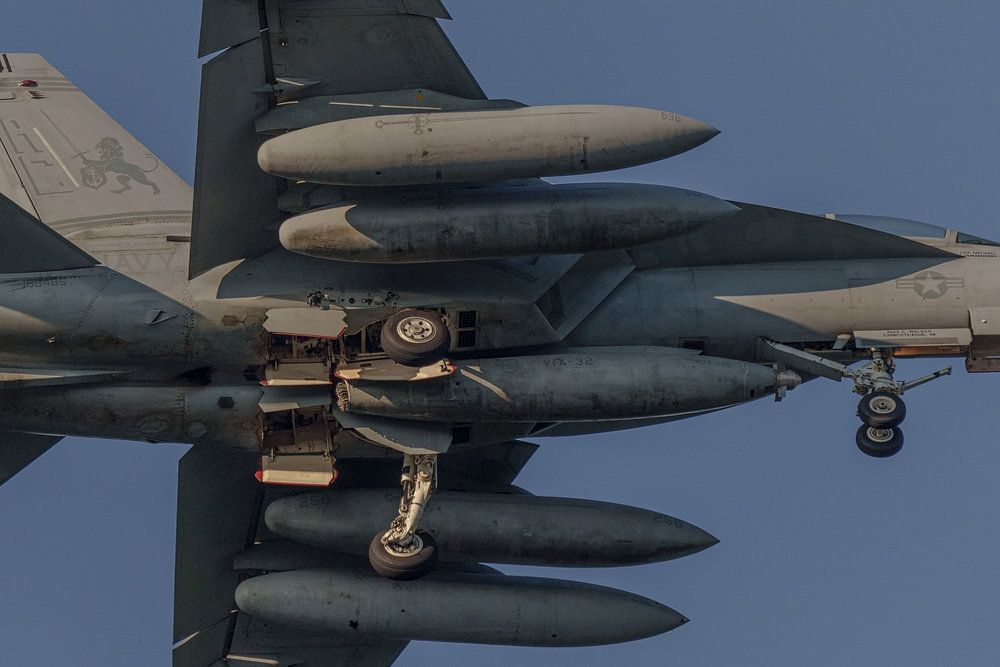 Atterrissage du Boeing F/A-18F Super Hornet de la marine américaine.