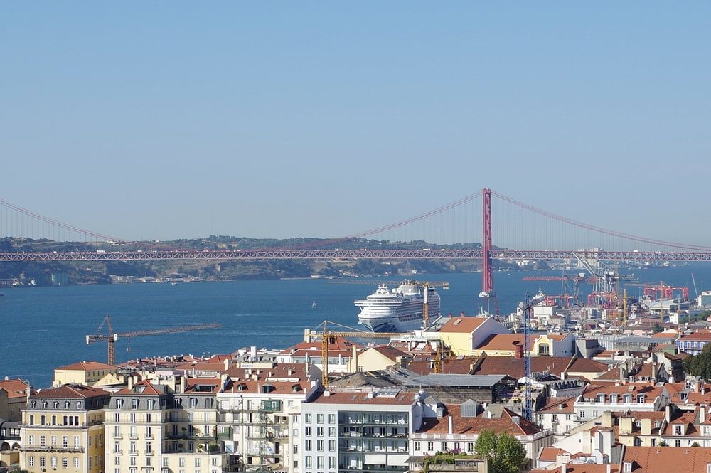 Vue sur Lisbonne depuis le "Castelo de São Jorge", avec le fleuve Tejo et le pont suspendu "Ponte 25 de Abril".