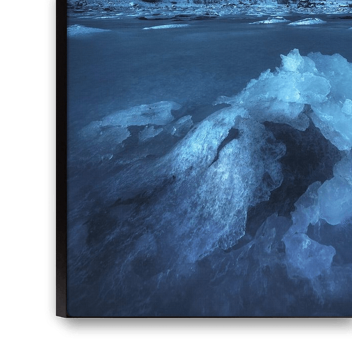 Cette photo a été prise dans les îles Lofoten, au nord de la Norvège. Elle montre un fjord gelé avec des pics montagneux marqués en arrière-plan. Les aurores boréales créaient une atmosphère mystique.