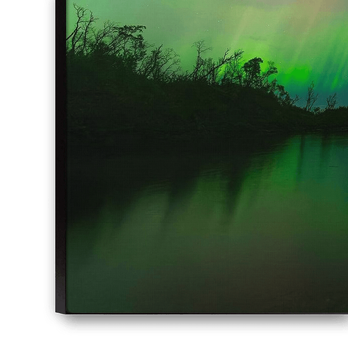 Ce motif capture la magie d'un moment rare - l'union de la terre, de la lumière et du ciel, du mouvement et du calme. Un symbole de la force tranquille et de la beauté poétique de la nature nordique.