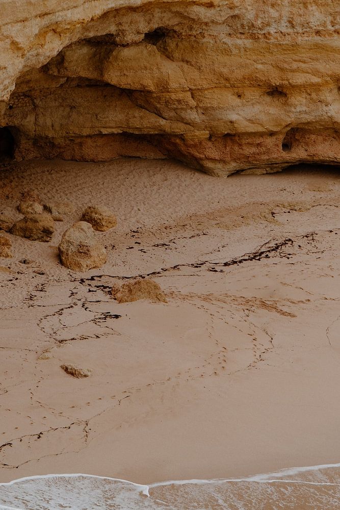 Cette photo, prise sur la côte accidentée de l'Algarve, montre une baie isolée avec une falaise naturellement sculptée. Les vagues de l'Atlantique s'échouent doucement sur le sable tandis que les impressionnantes falaises créent un endroit abrité. Ce joyau caché respire la tranquillité et une beauté intacte, parfaite pour les amateurs de paysages naturels. Cette photographie de voyage capture le charme unique de l'Algarve et apporte un morceau de cette côte portugaise directement dans vos intérieurs. Idéale pour un salon, un bureau ou une chambre à coucher pour une atmosphère sereine.