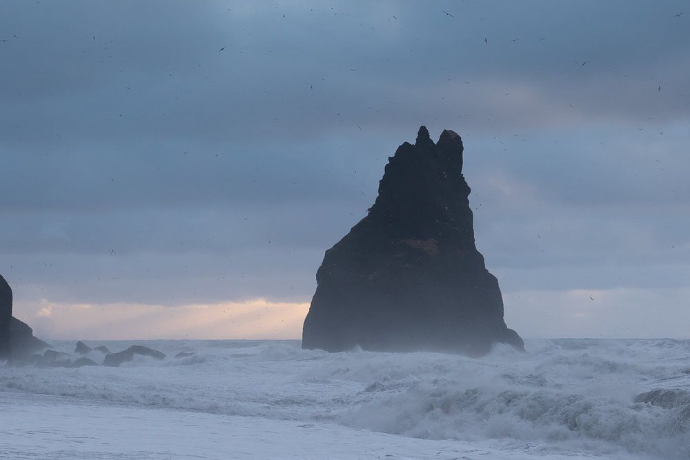 Reynisfjara, l'une des plus belles et des plus dangereuses plages d'Islande au coucher du soleil, Europe