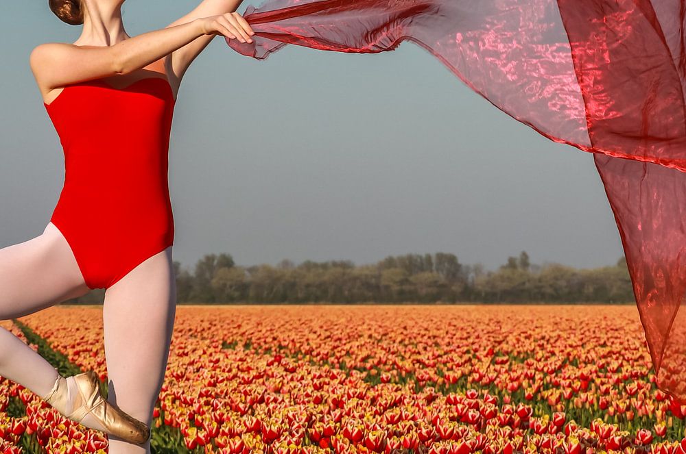 Ballerina in 't Zand , met op de achtergrond Molen O-T en de tulpenvelden.