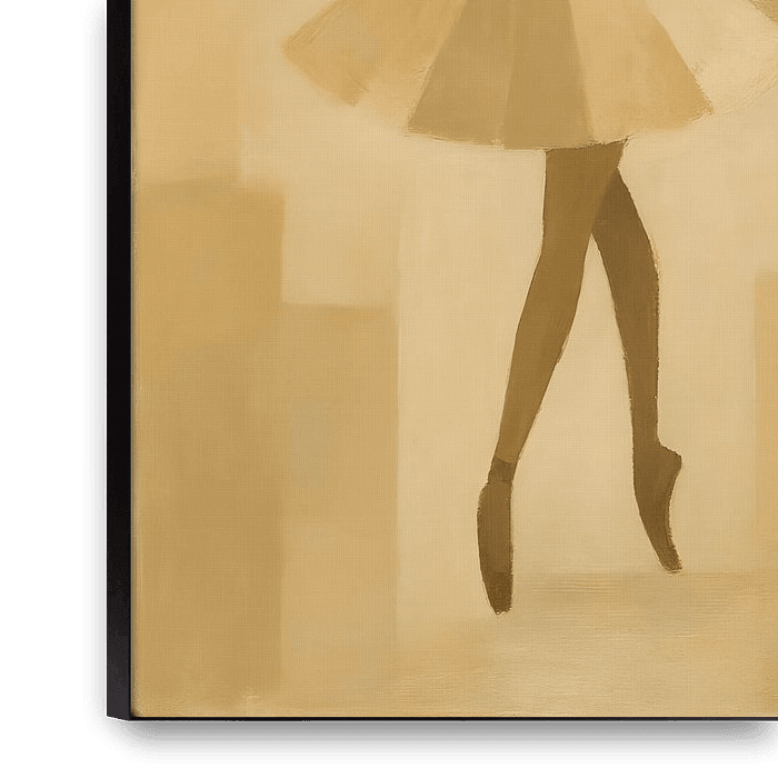Une ballerine abstraite, moderne et minimaliste, réalisée dans des tons chauds et naturels. De douces nuances de beige et de brun se fondent les unes dans les autres et capturent l'essence du mouvement et de l'équilibre, sans forcer les détails. Les formes sont à la fois subtiles et puissantes : une silhouette discrète qui suggère…