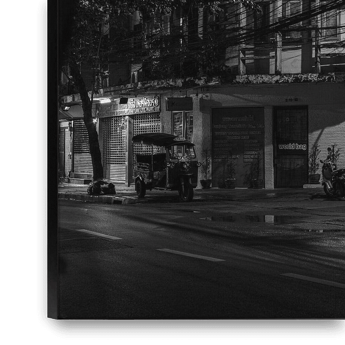 Cette photo a été prise lors d'une promenade nocturne dans mon quartier de Bangkok. Je trouve que l'atmosphère de cette photo a quelque chose de magique. Le béton et les câbles électriques sont éclairés par les lampadaires. Pendant la journée, c'est une rue très animée mais le soir et la nuit, ce quartier se calme. Cette photo a…