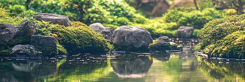 Bannière d'arrière-plan de jardin zen. Image de saison asiatique par Ariadna de Raadt-Goldberg