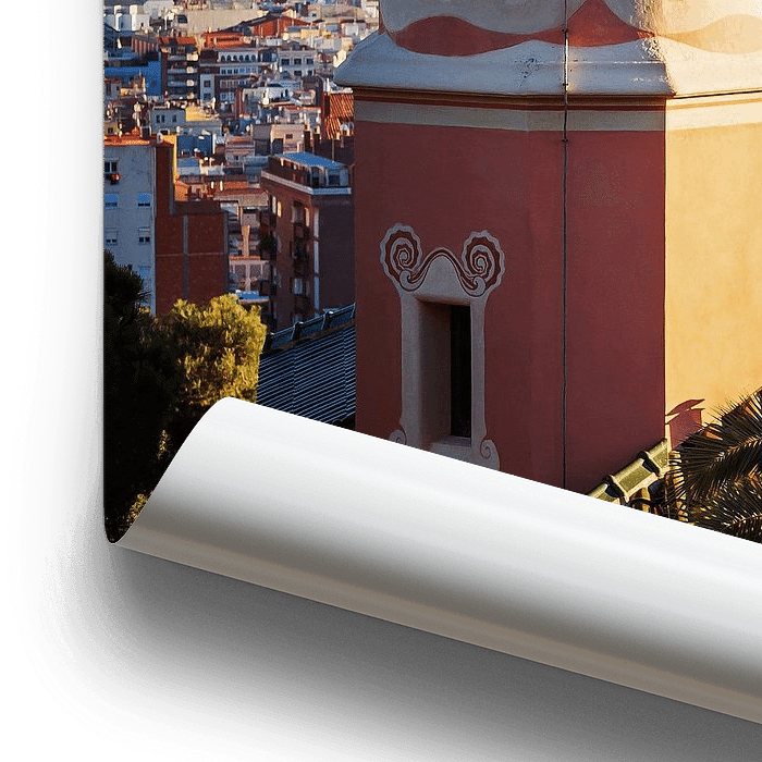 Une photo de la ligne d'horizon de Barcelone. Le cliché montre une vue depuis le parc Güell avec la Casa-Museu Gaudí au premier plan.