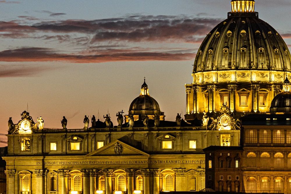 Basilique Saint-Pierre, coucher de soleil à Rome.