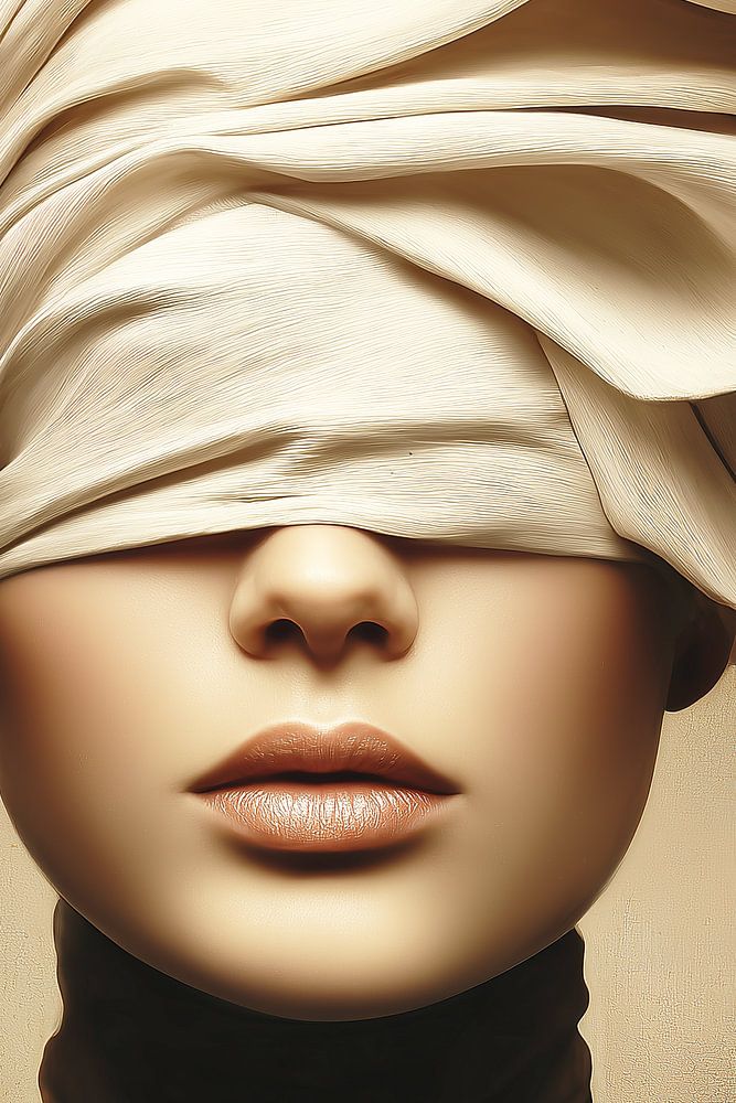 Une apparition mystérieuse avec un turban spectaculaire couvrant complètement ses yeux. Prête à entrer dans la vie sans avoir à la voir.