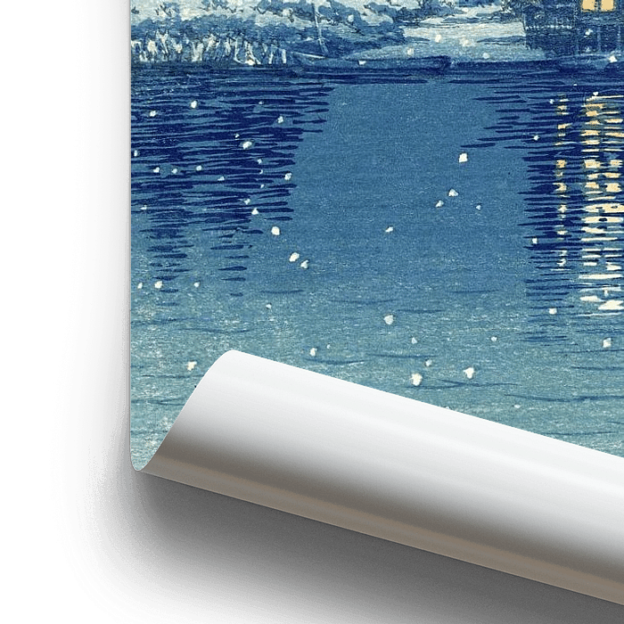 Acheter ce tableau Bateau sur la rivière dans la neige nocturne (Ushibori), Kawase Hasui, Japon, 1930 par Roger VDB sur toile, aluminium, ArtFrame ou photographie (encadrée), impression d'art en haute qualité et tout format.