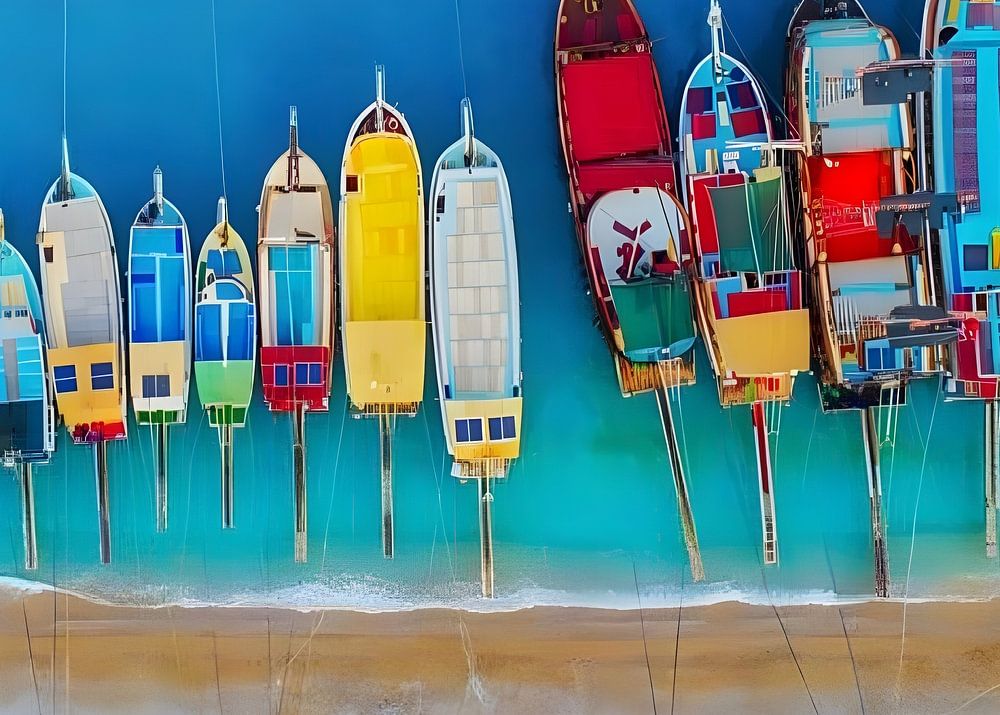 Achetez cette œuvre d'art de paysage Bateaux colorés par Gapran Art sur toile, aluminium, ArtFrame ou photographie (encadrée), impression d'art en haute qualité et tout format.