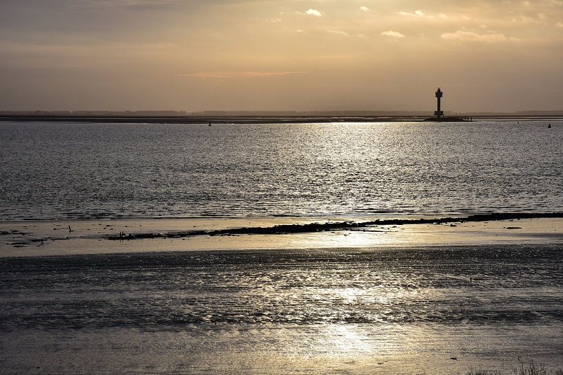 La baie de Bath dans l'Escaut occidental aux Pays-Bas, vue lors d'un coucher de soleil hivernal.
