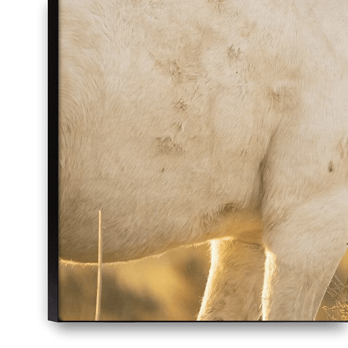 Achetez cette œuvre d'art de paysage Beau cheval camarguais dans le soleil du matin. par Kris Hermans sur toile, aluminium, ArtFrame ou photographie (encadrée), impression d'art en haute qualité et tout format.