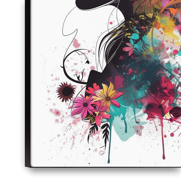 Silhouette de femme avec des éléments floraux colorés.
