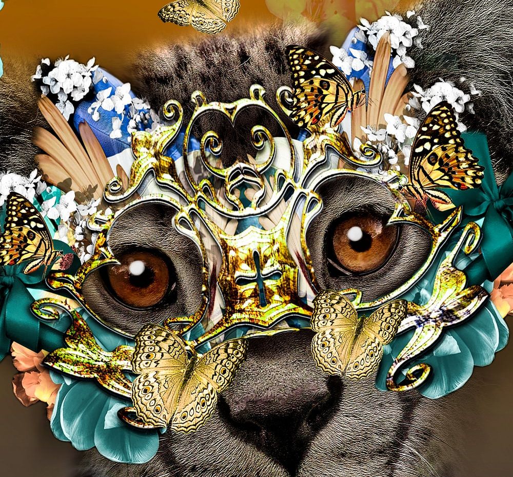 Le petit guépard regarde curieusement autour de lui. Il voit les papillons dorés qui voltigent. Ils semblent danser au gré du vent. Il les suit des yeux et essaie de les attraper avec ses pattes. Il entend le bruissement des feuilles et le bourdonnement des abeilles. Il sent le doux parfum des fleurs japonaises qui l'entourent. Les fleurs couleur menthe forment un beau contraste avec sa fourrure tachetée. Il se sent en sécurité et heureux dans ce monde merveilleux. Le cercle doré à l'arrière-plan symbolise l'aube d'un nouveau jour.