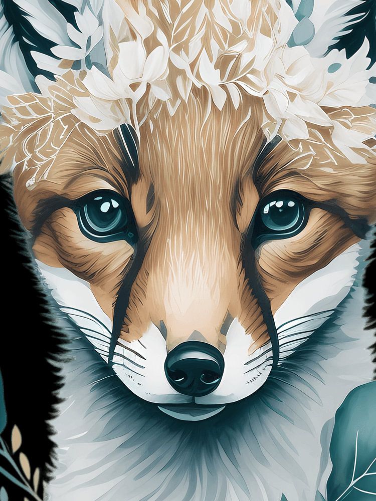 Achetez cette œuvre d'art florale Bébé renard à fleurs par 1xMerch sur toile, aluminium, ArtFrame ou photographie (encadrée), impression d'art en haute qualité et tout format.