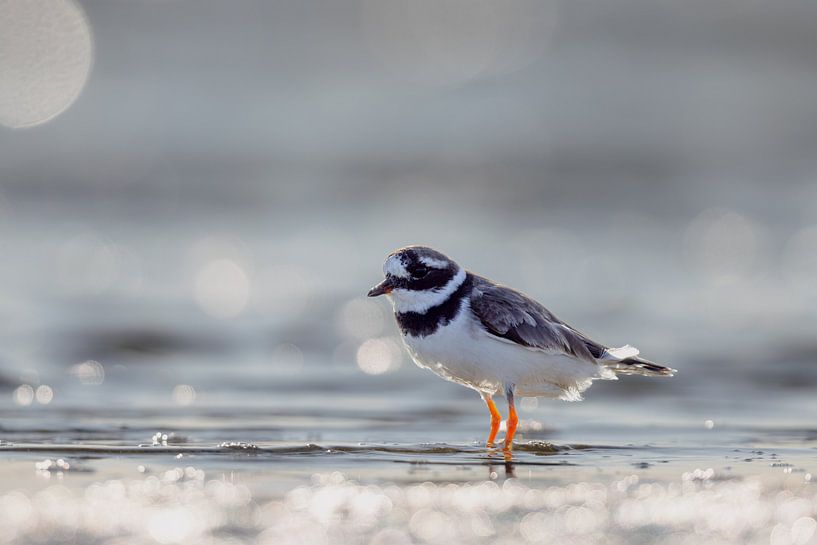 Bécasseau variable (Charadrius hiaticula) dans une lagune de Camargue, France.