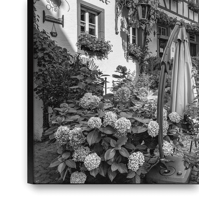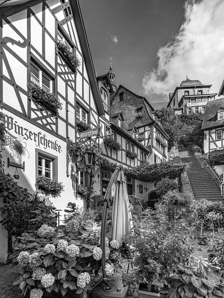 * Maisons à colombages de Beilstein * La ville de Beilstein sur la Moselle en noir et blanc. 90340036ays
