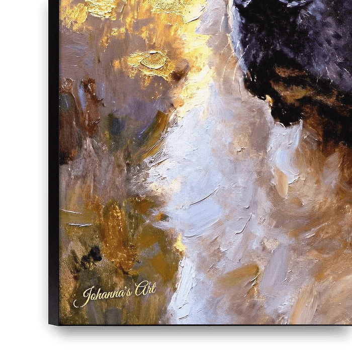 Le berger du Caucase émerge de la toile avec une présence imposante mais sereine, un portrait de force tempérée par la loyauté et une douce dévotion. Dans The Dogs – The Faithful Heart Collection, des coups de couteau à palette expressifs superposent des textures riches sur le pelage épais et majestueux, créant une profondeur et un mouvement qui donnent vie à la nature formidable mais tendre de la race. De doux reflets balayent la fourrure, captant les subtils changements de lumière, tandis que des ombres douces enveloppent la silhouette d'une sophistication calme, évoquant un sentiment de luxe organique. La peinture capture la vigilance inébranlable et l'esprit protecteur de la race, équilibrés par la chaleur tranquille d'un compagnon dévoué. Le regard du berger du Caucase, à la fois vigilant et expressif, ancrent la composition, révélant un cœur inébranlable dans l'amour et la protection. Sous les textures dynamiques, l'énergie et le calme coexistent, rappelant que la loyauté peut être aussi puissante que douce. Ce portrait rend hommage au courage, à la patience et au dévouement indéfectibles de la race, célébrant non seulement sa présence physique, mais aussi l'esprit fidèle qui l'habite. Rendu par des couches de lumière, de texture et de mouvement expressif, il est un hommage à un cœur qui veille, attend et aime sans fin.