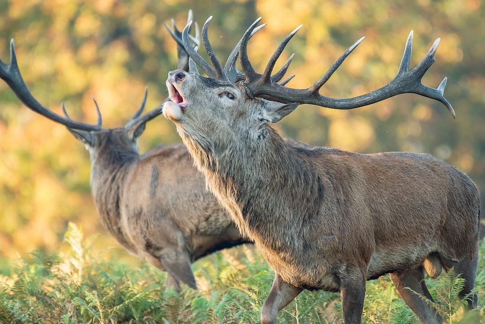 Beuglement des cerfs rouges en automne dans le parc de Richmond