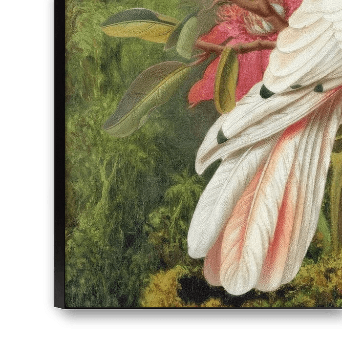 Un magnifique cacatoès sur une branche d'arbre, dans un paysage tropical.