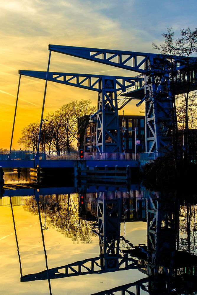 Zonsondergang gezien vanuit de Piushaven in Tilburg.