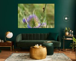 Distel aan het einde van bloei, vergezeld door een rups
