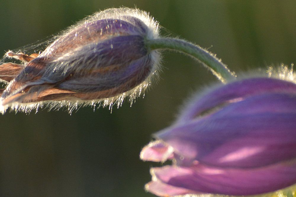 Deze ruige klokjes groeien en bloeien elk voorjaar weer valk in de buurt. Het ruige oogt zich vooral in de beharing, die 's avonds mooi oplicht in het gouden uur. Het paarse en witte van de bloemen krijgt zo een hele andere gloed.