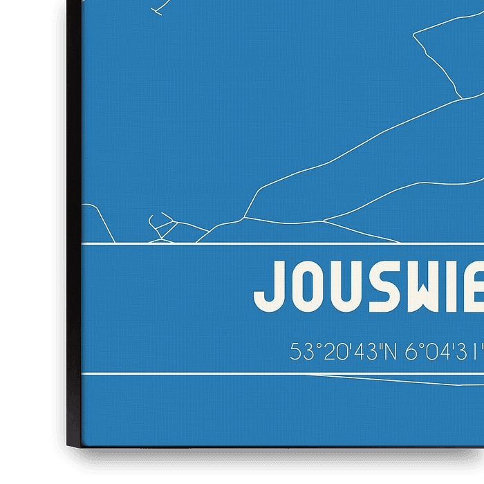 Plan de la carte / plan de la ville néerlandaise Jouswier, située dans la municipalité Noardeast-Fryslan, province Fryslan. La carte contient toutes les routes publiques et les coordonnées du centre de Jouswier.