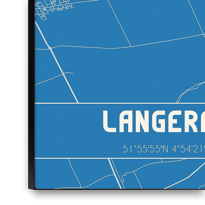 Plan de la carte / plan de la ville néerlandaise de Langerak, située dans la municipalité de Molenlanden, province de Hollande méridionale. La carte comprend toutes les routes publiques et les coordonnées du centre de Langerak.