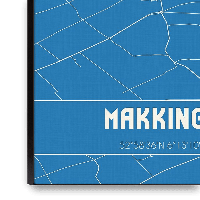 Plan de la carte / plan de la ville néerlandaise de Makkinga, située dans la municipalité de Ooststellingwerf, province de Fryslan. La carte comprend toutes les routes publiques et les coordonnées du centre de Makkinga.