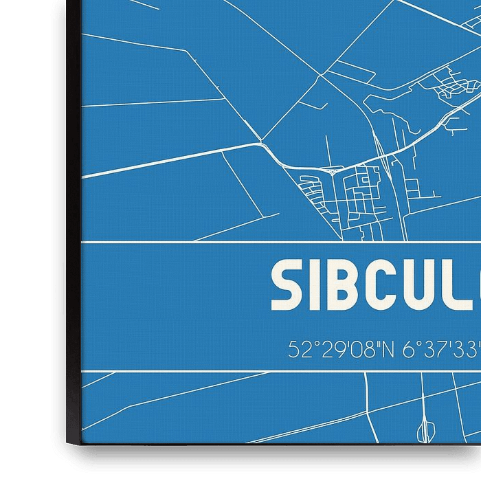 Plan de la carte / plan de la ville néerlandaise Sibculo, située dans la commune de Hardenberg, province d'Overijssel. La carte contient toutes les routes publiques et les coordonnées du centre de Sibculo.