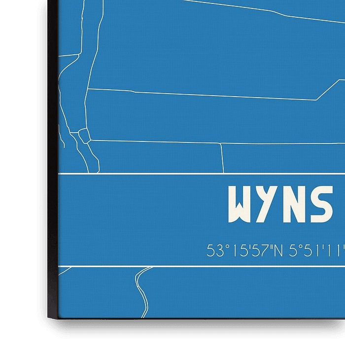 Plan de la carte / plan de la ville néerlandaise Wyns, située dans la municipalité Tytsjerksteradiel, province Fryslan. La carte contient toutes les routes publiques et les coordonnées du centre de Wyns.