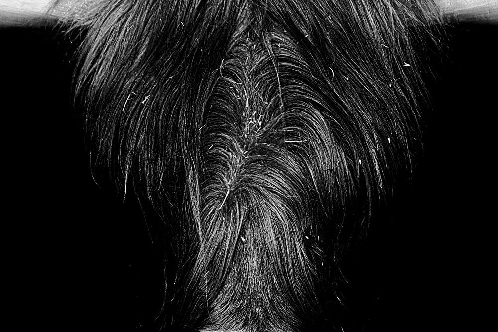 Ce bovin des Highlands écossais était "profondément détendu", même le groupe de maternelle qui se tenait à côté de moi et qui faisait de plus en plus de bruit pour l'attirer hors de l'étable n'a pas réussi à le déstabiliser. Heureusement pour moi, car l'arrière-train était dans l'abri sombre et seule la tête sortait à la lumière.