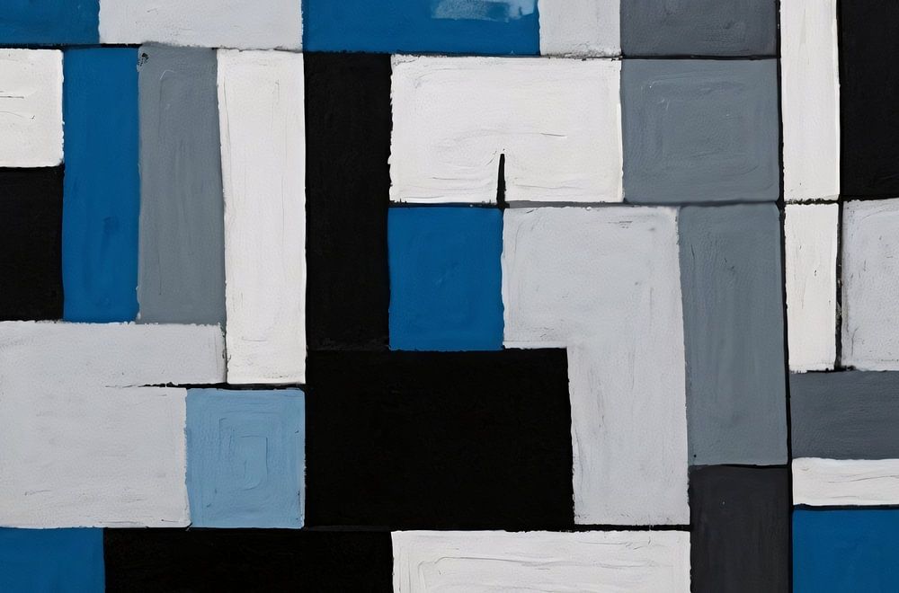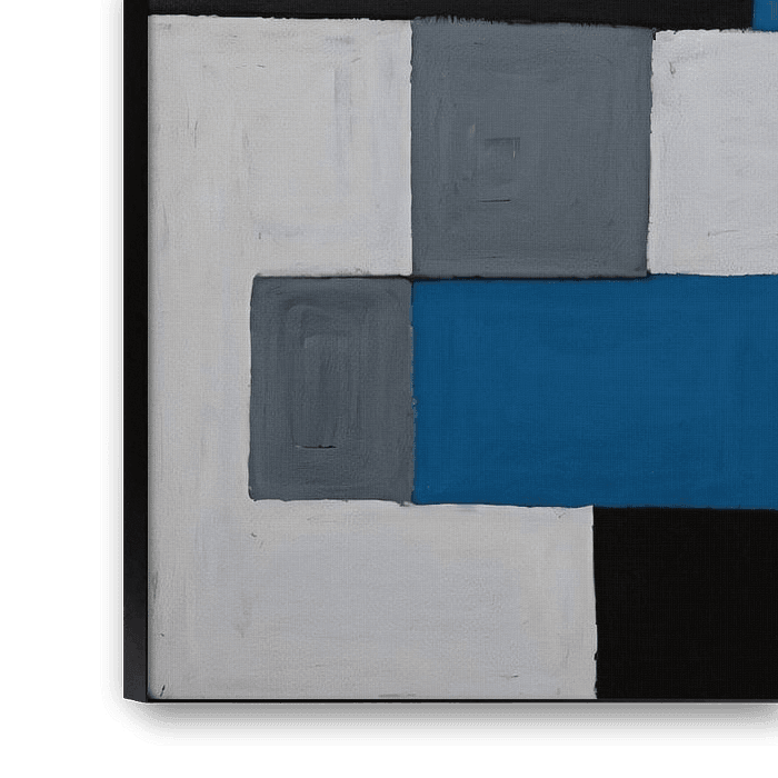 Découvrez une symphonie visuelle d'équilibre et de simplicité avec cette étonnante pièce abstraite. Les palettes de couleurs monochromes audacieuses de noir, de blanc et de gris sont animées par des accents bleus saisissants, chaque bloc et chaque ligne étant soigneusement placés pour créer un paysage géométrique saisissant. Cette œuvre est le complément parfait de tout espace moderne, invitant à la fois à la tranquillité et à la curiosité intellectuelle. L'apparente simplicité du dessin cache une profonde complexité qui se révèle à chaque regard, invitant le spectateur à la réflexion et au dialogue intérieur. Que ce soit dans un salon élégant ou dans un coin d'étude tranquille, cette œuvre d'art ne manquera pas de susciter la conversation et d'ajouter une élégance intemporelle à vos murs.