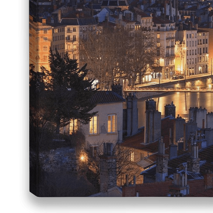 Le début d’une belle soirée à Lyon. La Saône traverse Croix Rousse et Vieux Lyon à Confluences, tandis que la Tour Incity la dernière lumière du jour.