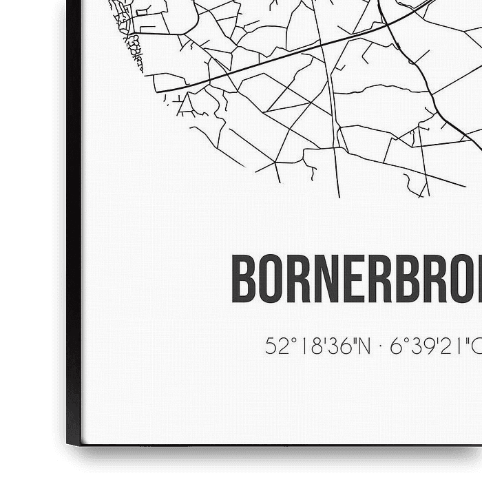 Acheter ce illustration Bornerbroek (Overijssel) | Carte | Noir et blanc par Affiches de lieux sur toile, aluminium, ArtFrame ou photographie (encadrée), impression d'art en haute qualité et tout format.