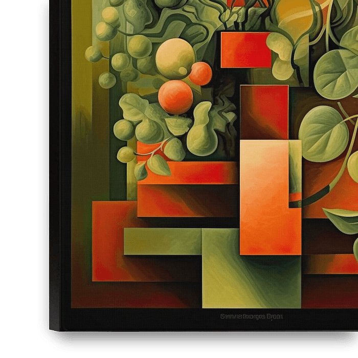 Das Bild zeigt eine Pflanze im kubistischen Stil. Die Darstellung ist abstrakt und dynamisch. Kräftige Farben betonen die Schönheit der Natur auf innovative und moderne Weise. Ein fesselndes Werk, das die Pflanze aus neuen Perspektiven zeigt und ihre Komplexität auf einzigartige Weise einfängt.