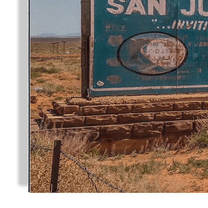 La Monument Valley est une plaine située sur le plateau du Colorado, à la frontière sud de l'Utah et de l'Arizona. Elle est située dans la réserve de la nation Navajo. Le paysage a déjà servi de décor à de nombreux films. Magnifique photo de paysage avec le panneau de la frontière de l'État.