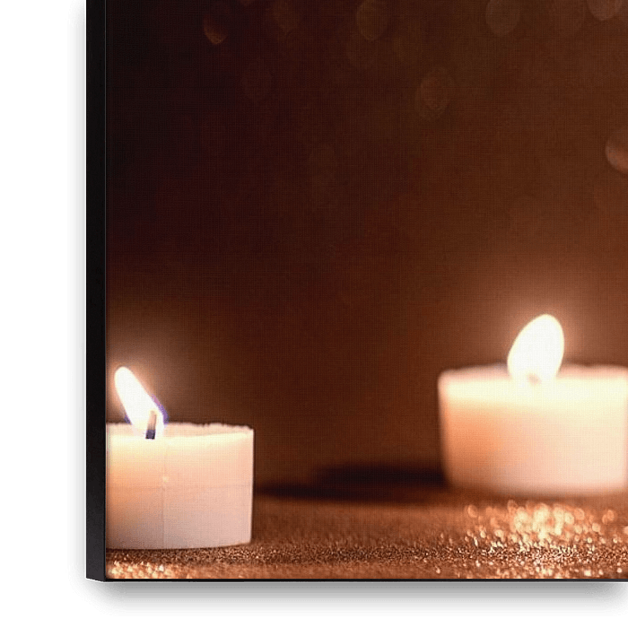 À propos de ‘Bouddha avec bougies sur fond scintillant’ par Alexander Baumann