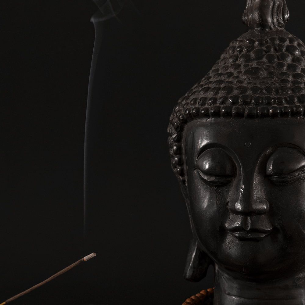 A propos de "Bouddha avec de l'encens sur fond noir"
